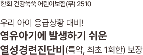 | 열성경련진단비 | 보험기간 중 약관에서 정한 "열성경련"으로 진단확정된 경우 보험가입금액 지급(최초 1회한) |