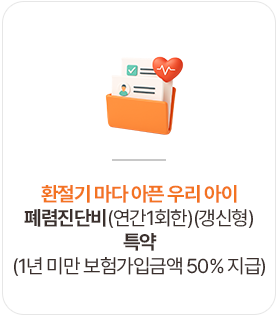 / 3.열나고 기침하는 아이 감기로 착각하기 쉬운 질환, 폐렴! 폐렴진단비(연관1회한)(갱신형)특약으로 치료비 부담↓(1년 미만 보험가입금액 50% 지급)